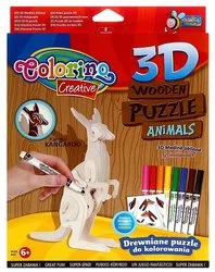 Puzzle Drewniane 3D Do Malowania Kangur + Akcesoria /Colorino