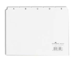 Przekładki do Kartotek A-Z 5/5 PCW 0,3mm Indeksy 40mm Poziome A5 25cz. Białe /Durable 365002
