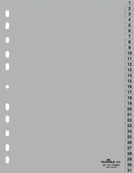 Przekładki do Segregatorów A-Z (20) PP A4 Częściowo Osłonięte Szare /Durable 650010