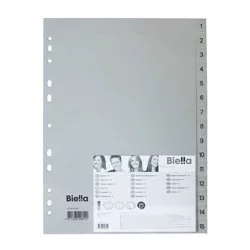 Przekładki PP A4 Numeryczne 1-15 Szare /Biella