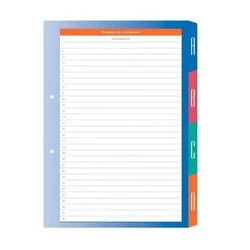 przekładki indeksujące z oznaczeniami literowymi i cyfrowymi,
