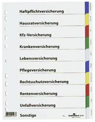 Przekładki do Segregatorów Czyste (10) Spis Treści Wykaz PP A4 Mix Kolorów /Durable 674127