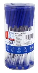 Długopis Biurowy Przezroczysty 1 Mm Memobe Niebieski, Tuba 25 Szt.
