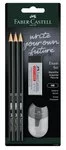 Grip 2001 Set Srebrny 3X Ołówek Hb +Gumka Nakładka Blister Faber-Castell