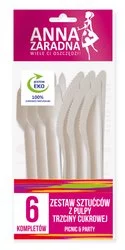 Zestaw sztućców z pulpy trzciny cukrowej 6 kompletów / AZ