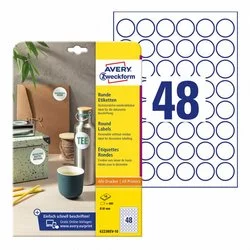 Etykiety Samop. Avery Okrągłe śr. 30mm 48/A4 Usuwalne Białe No.6223REV-10