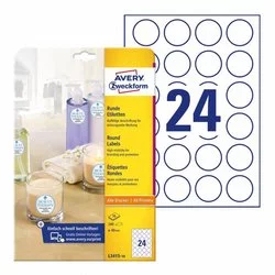 Etykiety Samop. Avery Okrągłe śr. 40mm 24/A4 Białe No.L3415-10