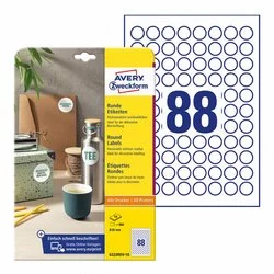 Etykiety Samop. Avery Okrągłe śr. 20mm 88/A4 Usuwalne Białe No.6222REV-10