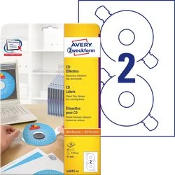 Etykiety Samop. Avery na CD 2/A4 A'25 Inkjet/Laser Białe Mat No.L6015-25