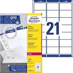 Samoprzylepne etykiety adresowe recyklingowane Avery 63.5x38.1 21/A4 A'250 białe No.L7160-250