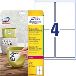 Usuwalne Etykiety Samoprzylepne Heavy Duty Avery 99,1x139 4/A4 A'20 Białe No.L4774REV-20