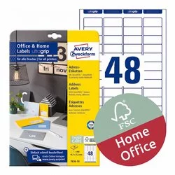 Etykiety Adresowe Avery UltraGrip Office&Home 45,7x21,2 48/A4 A'10 Białe No.7636-10