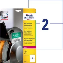 Etykiety Polietylenowe Ultra Resistant Avery 210x148 2/A4 A'10 Białe No.L7916-10