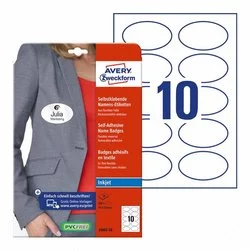 Usuwalne Samoprzylepne Identyfikatory Owalne Foliowe Avery 85x50 10/A4 A'20 Białe No.J4882-20