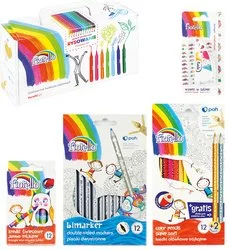 W naszej ofercie znajdziesz różnorodne zestawy artystyczne – od prostych kompletów dla dzieci z kredkami, pisakami i farbami plakatowymi, po profesjonalne zestawy zawierające farby olejne, akrylowe, akwarele, pastele, pędzle czy ołówki. Dzięki starannie dobranym elementom każdy zestaw umożliwia tworzenie wyjątkowych prac i naukę różnych technik.