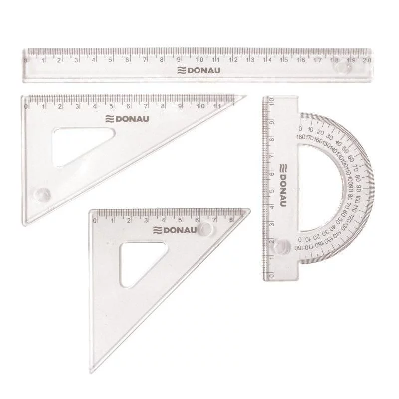 - zestaw mały: linijka 20cm, kątomierz, ekierka 9cm i ekierka 13,5cm