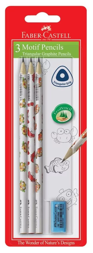 Ołówki Trójkątne Morski Świat Kpl. 3 Szt+ Gumka Blister Faber Castell
