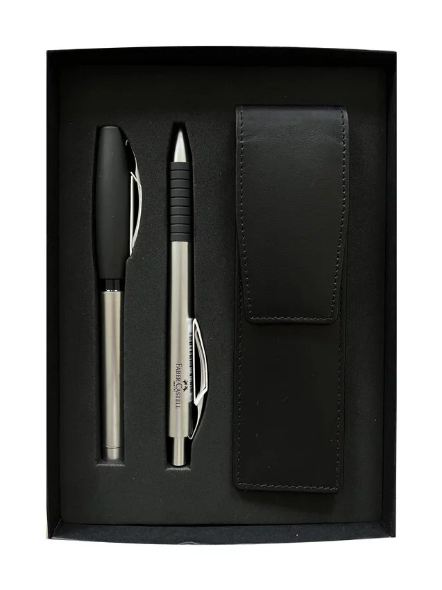 Zestaw Prezentowy Basic Metal Pióro+Długopis+Etui Skórzane Faber-Castell
