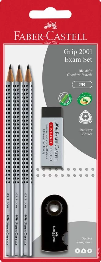 Zestaw Grip 2001 (3Xołówek+Gumka Dust Free Czarna+Temperówka Sleeve) Faber-Castell