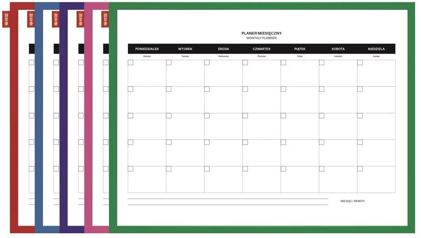 Tablica Planer Memobe, Miesięczny, Nadruk W Kolorze Czarnym, Rama Drewniana Lakierowana Mix Kolorów, 60X40 Cm