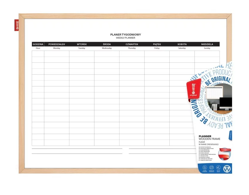 Tablica Planer Memobe, Tygodniowy, Nadruk W Kolorze Czarnym, Rama Drewniana, 60X40 Cm
