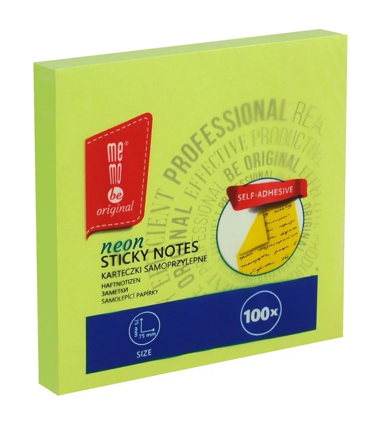 Karteczki Samoprzylepne Memobe, Neon Zielony, 100 Kart., 75X75 Mm