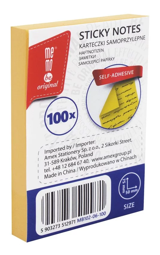 Karteczki Samoprzylepne MemoBe – 50x75 mm, 100 sztuk, Żółte – Idealne do Notatek i Przypomnień