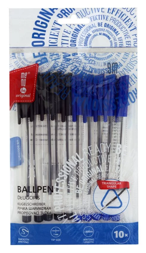 Długopis Biurowy Przezroczysty 1 Mm Memobe Czarny + Niebieski 10 Szt. Etui