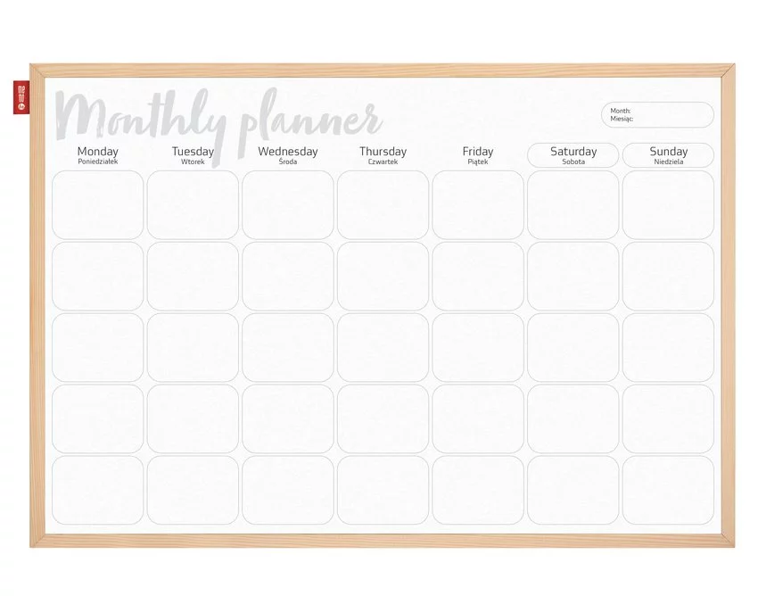 Tablica Planer Memobe, Miesięczny, Nadruk W Kolorze Czarnym, Rama Drewniana, Model 5, 90X60 Cm