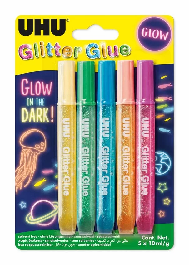 Klej Brokatowy Świecący W Ciemności 5 Kol. X 10 Ml Blister Uhu
