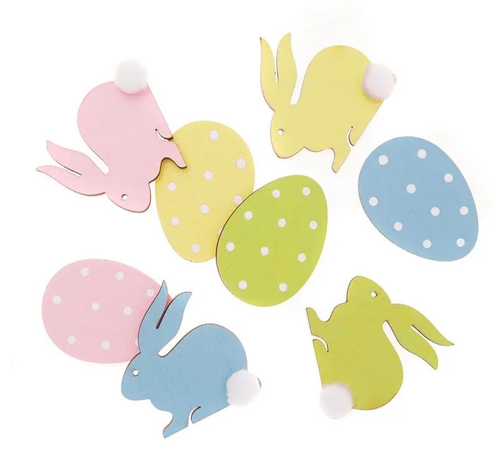 Drewniane Króliczki i Jajka 4cm 8szt. Pastelowe / DpCraft