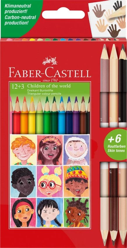 Kredki Trójkątne Children Of The World 12 Kol. + 3 Kredki Dwustronne W Odcieniach Skóry Faber-Castell