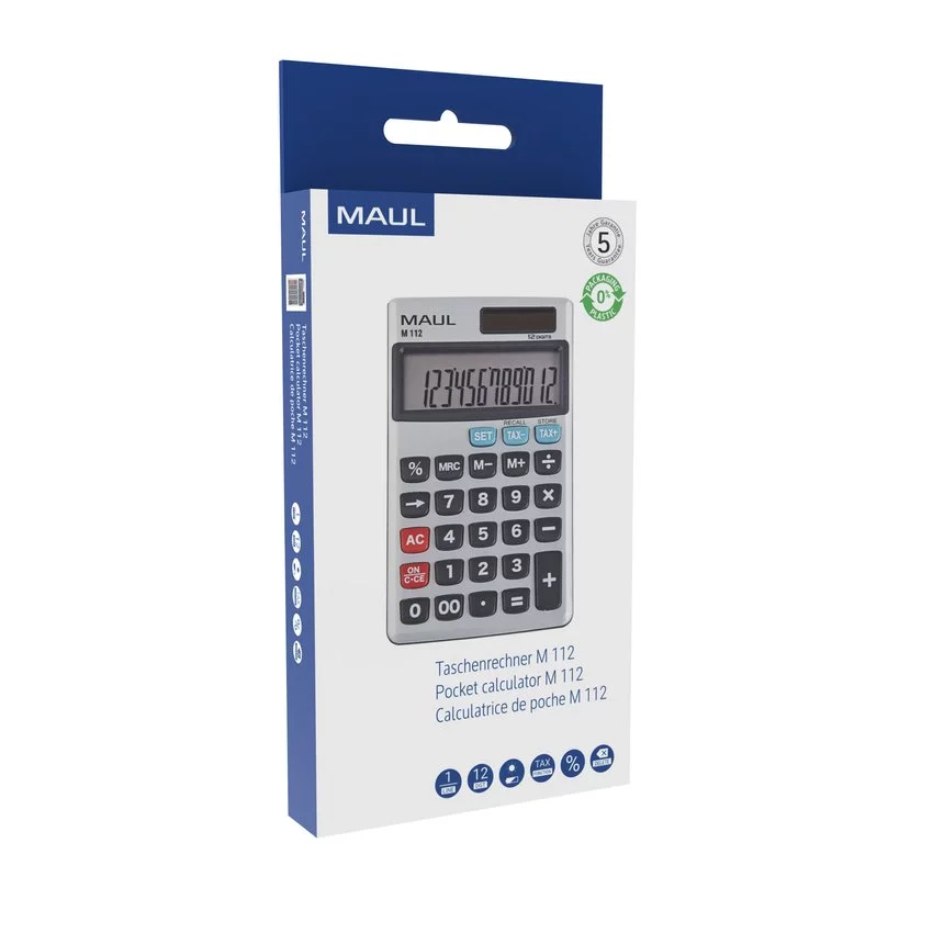 Kalkulator Kieszonkowy M 112, 12-Pozycyjny, Obliczanie Podatku, Srebrny Maul