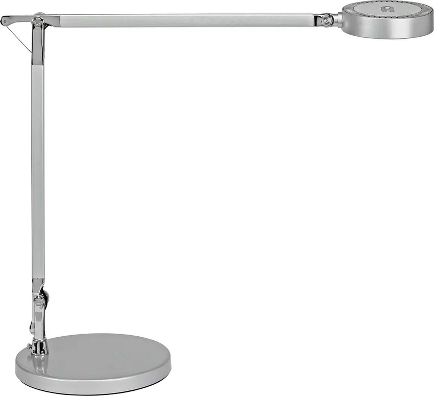 Lampa biurkowa LED MAULgrace w kolorze srebrnym. Połączenie wysokiej jakości i doskonałego designu, opartego na prostych liniach. Zajmuje niewiele miejsca stanowiąc nowoczesne uzupełnienie biurka. Ekonomiczna – wykorzystuje nowoczesną technologię oświetlenia LED. Z możliwością regulacji temperatury barwowej, natężenie oświetlenia można regulować za pomocą 4-stopniowego ściemniacza w zależności od pory dnia i osobistych potrzeb. Elegancka, wykonana ze szczotkowanego, anodowanego aluminium. Zapewnia doskonałe oświetlenie przestrzeni roboczej – bezcieniowe, z góry. Regulowane w dwóch miejscach ramię gwarantuje ustawienie idealnego kąta nachylenia. Dane techniczne: Wymiary: wysokość: 46,6 cm, głowica: o 11,6 cm, ramię: długość dolnego ramienia 36,5 cm, długość ramienia 36,5 cm, podstawa: o 20,5 cmDługość kabla: 2 mGwarancja: 2 lataNatężenie oświetlenia: 1400 lx w odległości 35 cmTemperatura barwowa: 3000K (światło białe ciepłe) do 6500K (światło białe dzienne)Liczba źródeł światła: 1Klasa energetyczna: FZużycie energii: 6 kWh/1000 h Żywotność: L70B50 - 20000 godzin świeceniaStrumień świetlny: 618 lmWłącznik: w głowicy lampyMoc elektryczna: 6WNapięcie zasilania: 220-240 VKoncepcja bezpieczeństwa technicznego opracowana przez MAUL: gwarancja bezpieczeństwa lampy biurkowej LED MAULarc potwierdzona przez zespół ds. optycznych, elektronicznych i mechanicznych oraz zespół inżynierów produkcji.