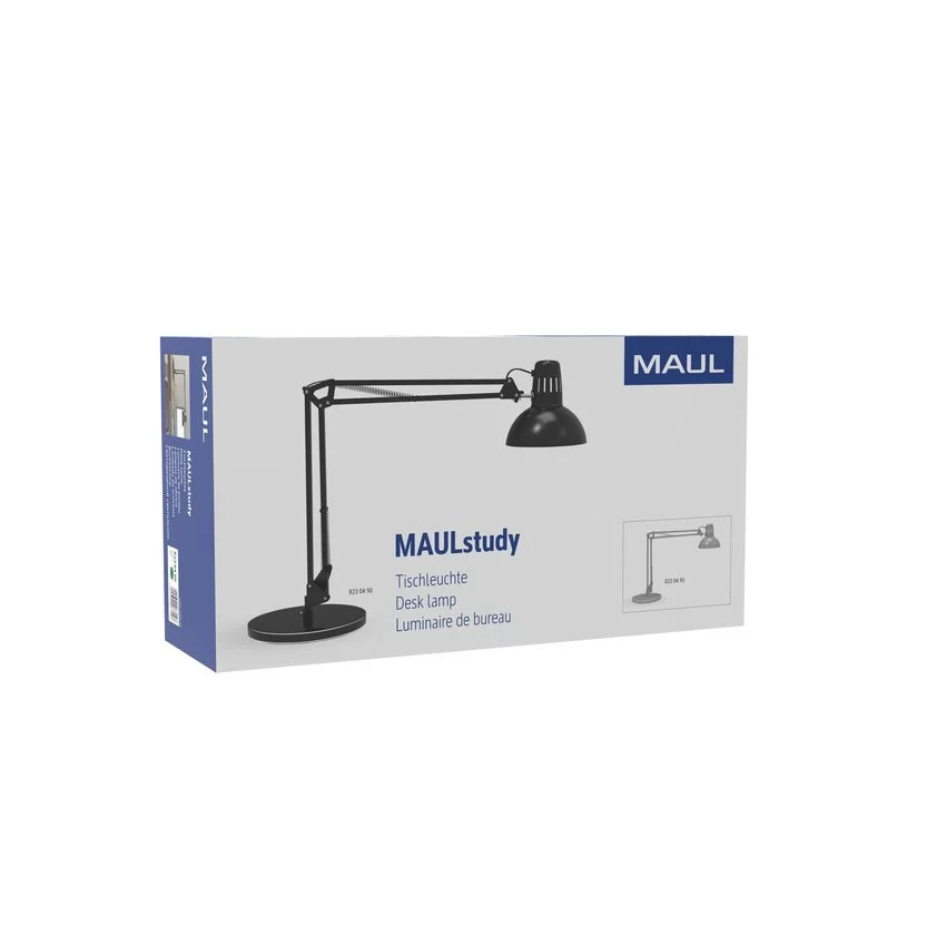 Lampa biurkowa MAULstudy w kolorze srebrnym. Klasyczna i profesjonalna lampa dla studentów, uczniów i w miejscu pracy. Zapewnia doskonałe oświetlenie przestrzeni roboczej. Wytrzymała i solidna, z możliwością regulacji w każdym kierunku. Do żarówki LED 9,5 W (trzon E27). Wyjątkowo stabilna dzięki specjalnemu obciążeniu podstawy.Dane techniczne: Wymiary: wysokość: 47 cm, głowica: O 17 cm, ramię: długość dolnego ramienia 35 cm, długość ramienia górnego 35 cm, podstawa: O 23 cm Długość kabla: 1,8 mGwarancja: 2 lataWłącznik: na kabluKoncepcja bezpieczeństwa technicznego opracowana przez MAUL: gwarancja bezpieczeństwa lampy biurkowej LED MAULarc potwierdzona przez zespół ds. optycznych, elektronicznych i mechanicznych oraz zespół inżynierów produkcji.