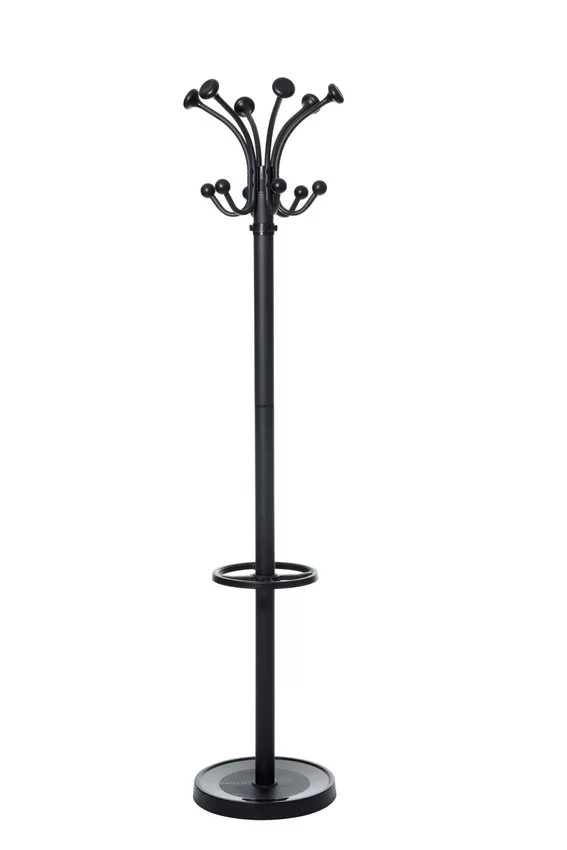 Wieszaki podłogowe MAUL - stylowe i zawsze w równowadze, poparte ponad 100-letnim doświadczeniem specjalistów zajmujących się konstrukcjami z metalu.MAULnubis wyróżnia się obrotową górną częścią o średnicy aż 40 cm, co gwarantuje łatwy dostęp z każdej strony.20 haczyków, w tym: 6 haczyków na nakrycia głowy, 6 na płaszcze, haczyki na stojaku oraz 4 dodatkowe na parasole lub inne drobne akcesoria. Końcówki o zaokrąglonym kształcie, wykonane z niełamliwego ABS, utrzymają i nie uszkodzą garderoby.Kręgosłupem jest stalowy słupek o błyszczącym, metalicznym wykończeniu, średnica 5 cm.Niezwykle stabilny - ciężka betonowa podstawa o średnicy 36,5 cm, ważąca 6 kg. Posiada powłokę z tworzywa sztucznego oraz filcowe ochraniacze podłoża.Błyszcząca podstawa z matową, postarzaną powierzchnią, odporna na zarysowania od końcówek parasoli.Łatwy montaż, ilustrowane instrukcje prowadzące krok po kroku, dołączone narzędzia. Opakowanie nadające się do recyklingu.