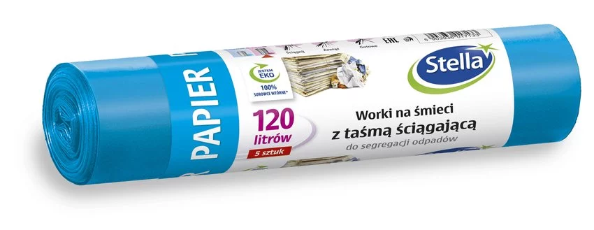 Worki z taśmą ściągającą do segregacji PAPIER 120L 5szt niebieskie / Stella
