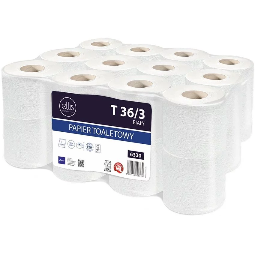 Papier toaletowy biały Ellis 3‑warstwowy z celulozy, rolka 36 m, opakowanie 24 szt.