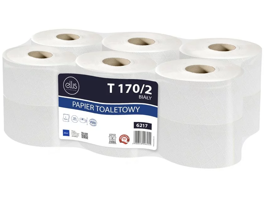 Papier toaletowy Ellis Mini Jumbo został zaprojektowany z myślą o miejscach, w których standardowe małe rolki zużywają się zbyt szybko. Każda rolka ma długość aż 160 m przy wysokości 9 cm i średnicy 19 cm, dzięki czemu idealnie pasuje do większości podajników Mini Jumbo w systemie T2. Dwuwarstwowa, miękka, a jednocześnie wytrzymała celuloza zapewnia wygodę użytkownikom, a biała barwa podkreśla wysoki standard higieny. Opakowanie zbiorcze zawierające 12 rolek umożliwia łatwe zaopatrzenie większych obiektów i planowanie dostaw z wyprzedzeniem.