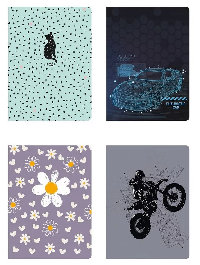 - zeszyt z miękką okładką, lakier UV