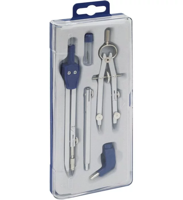 – 5 elementów w zestawie: cyrkiel 136 mm, zerownik, końcówka cyrkla z uchwytem uniwersalnym, przedłużacz, wymienny grafit