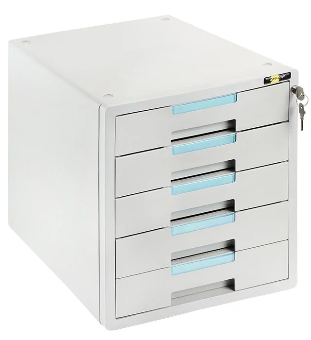Szafka na dokumenty Yellow One YL-SP05GY plastikowa – 5 szufl. + zamek, szaro-niebieska