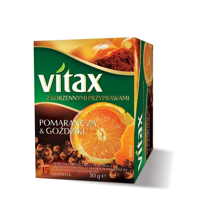Herbata Vitax Owocowo-Ziołowa Pomarańcza i Goździki – 15 kopert