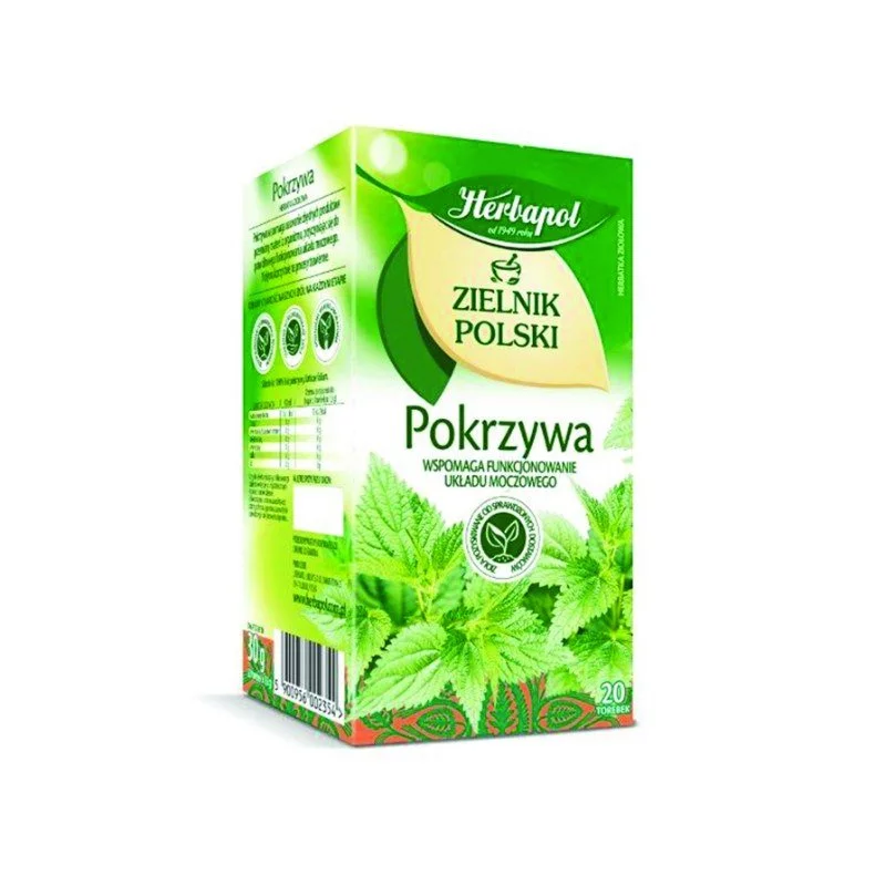 Herbata Herbapol Zielnik Polski Pokrzywa to ziołowy napar, który łączy tradycję ziołolecznictwa z naturalnym, zdrowotnym działaniem. Pokrzywa, znana z licznych właściwości wspomagających organizm, to idealny wybór dla osób, które pragną dbać o zdrowie w naturalny sposób. Herbata z pokrzywy jest bogata w witaminy, minerały oraz przeciwutleniacze, wspiera układ moczowy, poprawia krążenie oraz wpływa korzystnie na skórę.