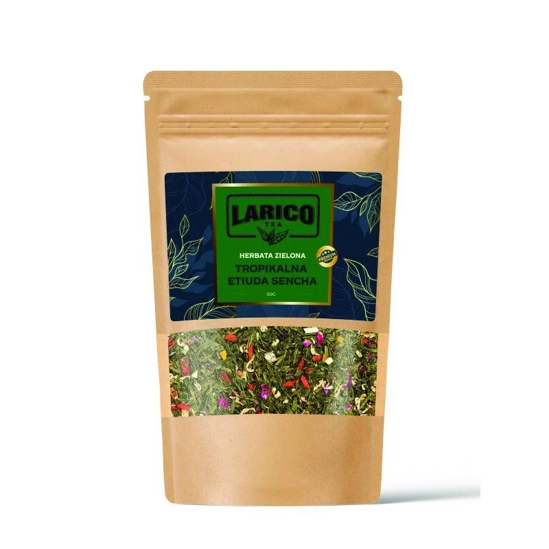 Herbata Zielona Larico Tropikalna Etiuda Sencha 50g – Egzotyczna podróż smaków na bazie zielonej herbaty Sencha
