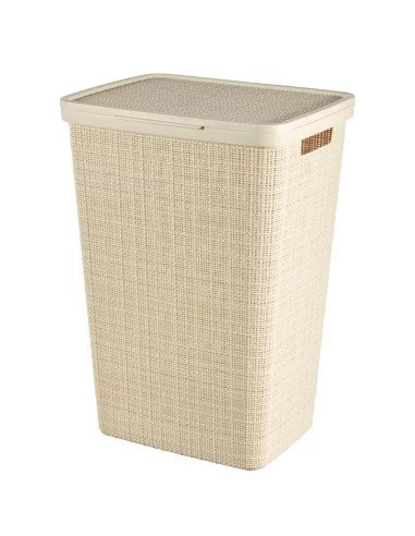 - Kosz na bieliznę Curver Jute 58L w kolorze kremowym z tworzywa imitującego jutę, z otworami wentylacyjnymi i ergonomicznymi uchwytami. Wymiary 43x34x60 cm, funkcjonalny i elegancki.