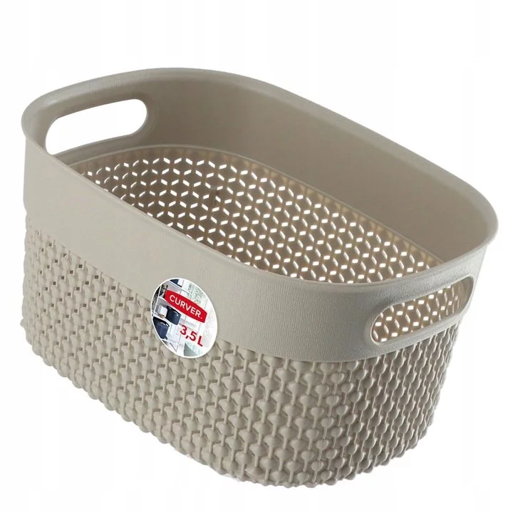 - Koszyk Curver Filo XS 3,5L w kolorze beżowym z tworzywa sztucznego, idealny do przechowywania drobnych przedmiotów, kosmetyków i akcesoriów w kuchni, łazience, biurze i sypialni.