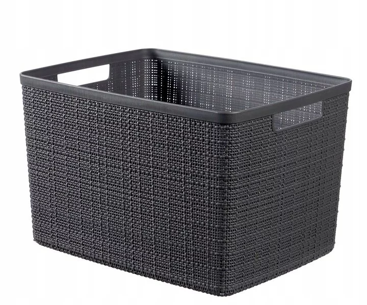 - Koszyk Curver Jute L 20L w kolorze ciemnoszarym, z tworzywa imitującego jutę. Trwały, łatwy w czyszczeniu, z ergonomicznymi uchwytami, idealny do przechowywania odzieży, zabawek i akcesoriów.