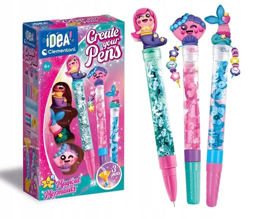 Mini Fabryka Długopisów Syrenki to oryginalny zestaw kreatywny od Clementoni, który pozwala na złożenie trzech długopisów i ich spersonalizowanie przy pomocy różnych ozdób. Praktyczny, wieloelementowy zestaw składa się z długopisów, tuszy w różnych kolorach, figurek oraz wszystkich narzędzi potrzebnych do ich wykonania. Koncepcja ta jest czymś znacznie więcej niż zwykłym zadaniem ozdobienia swojego długopisu – teraz można tworzyć, dając upust wyobraźni. Produkt opracowano i zaprojektowano we Włoszech.