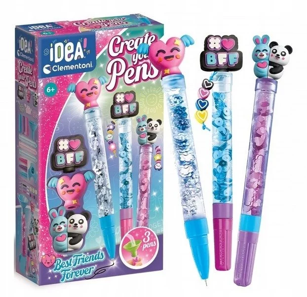 - Kreatywny zestaw od firmy Clementoni, który umożliwia dzieciom samodzielne tworzenie i personalizowanie trzech unikalnych długopisów.